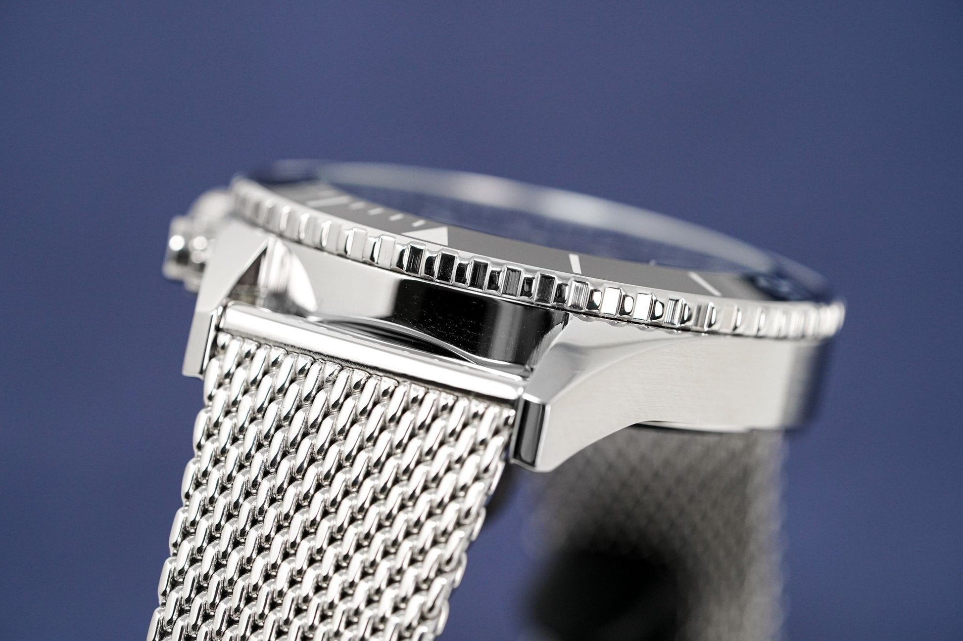 46mm Stainless Steel Case. Scratch Resistant Mineral Crystal.