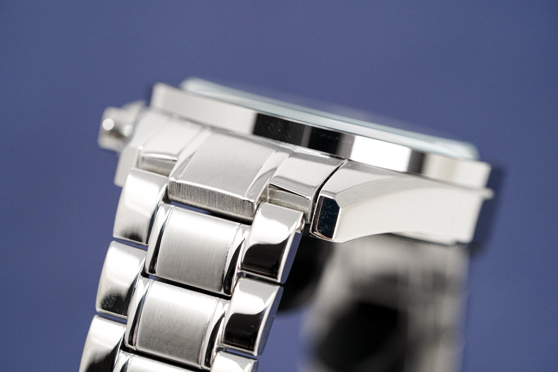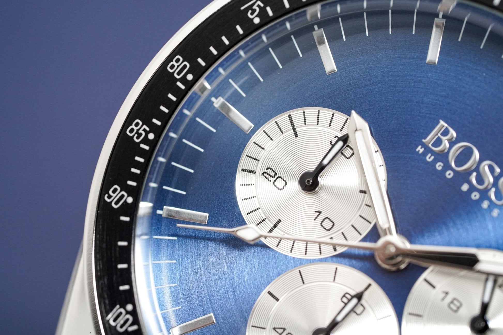 Blue Sunburst Dial. Luminous Steel Hands. Luminous Stainless Steel Stick Indexes. Date Window at 4:30.